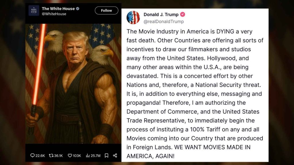 Trump’s claim is that America is being economically undermined by other countries offering incentives to lure U.S. film productions overseas. Places like Canada, the UK, and Australia have long offered generous tax credits, cheaper crews, and streamlined production pipelines that make them attractive alternatives to California. Trump’s solution? Slap a 100% import tax on every movie made outside the U.S. and make it “not worth it” to produce abroad.