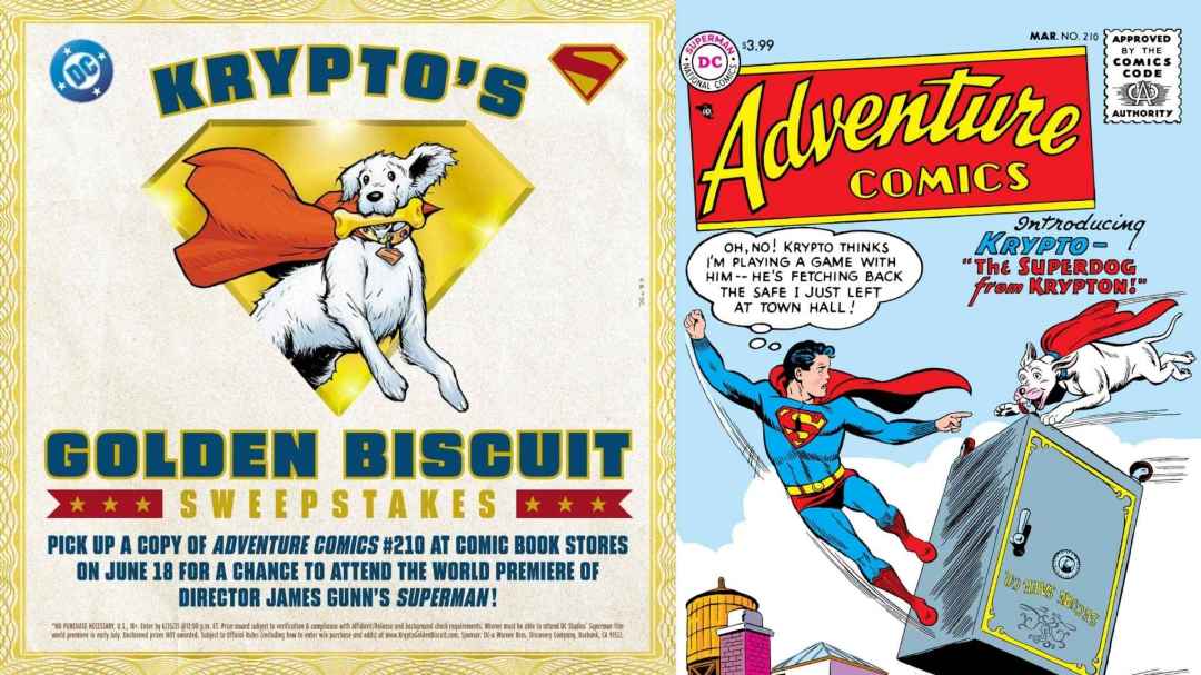 The Krypto Golden Biscuit Sweepstakes was announced like it meant something. Two lucky fans would find a special sticker inside a reprint of Adventure Comics #210 and win a trip to the Superman premiere. Sounds like a throwback to the kind of marketing that used to get people excited — cheap nostalgia dressed up as fan engagement. The problem is, the people this was aimed at didn’t care, didn’t notice, or didn’t exist.
